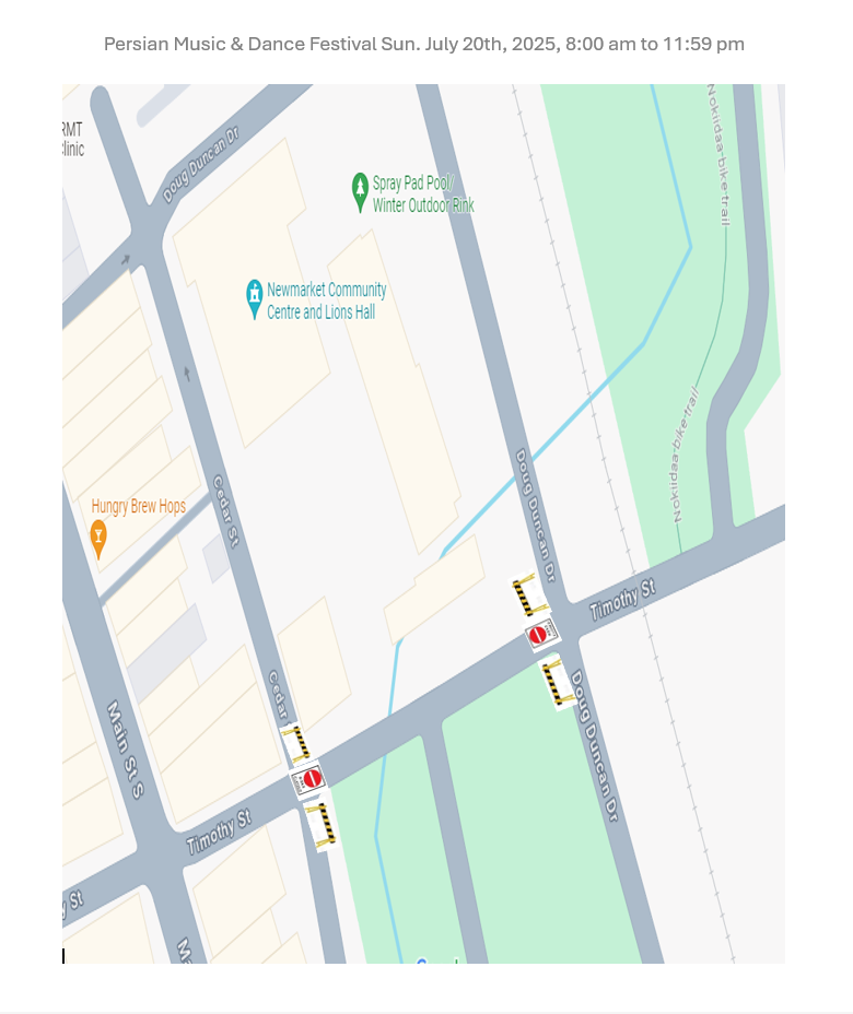 On Sunday, July 20 from 8 a.m. to midnight., Timothy Street between Cedar Street and Doug Duncan Drive will be closed for the Persian Music & Dance Festival.